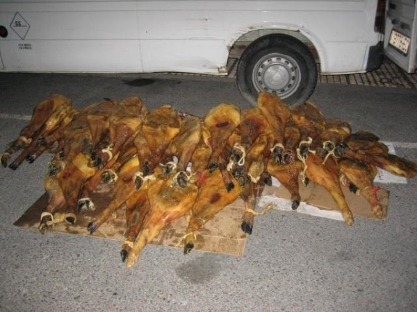 ICAL / La recuperación de los jamones y de las furgonetas comenzó cuando el lunes pasado se dio con un vehículo que había sido sustraído y que estaba cargado de jamones. Posteriormente, se localizaron dos furgonetas más en Narros del Castillo (Ávila), cuya sustracción había sido denunciada en el Puesto de Las Rozas (Madrid) el pasado 20 de noviembre. Ambas pertenecen a la empresa Diyoveng, con domicilio social en Majadahonda (Madrid).