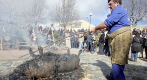 En el día de hoy, los matanceros del lugar, al son de la gaita y el tamboril y animados por los bailes típicos salmantinos han sacrificado un cerdo ibérico ante la mirada de decenas de curiosos.