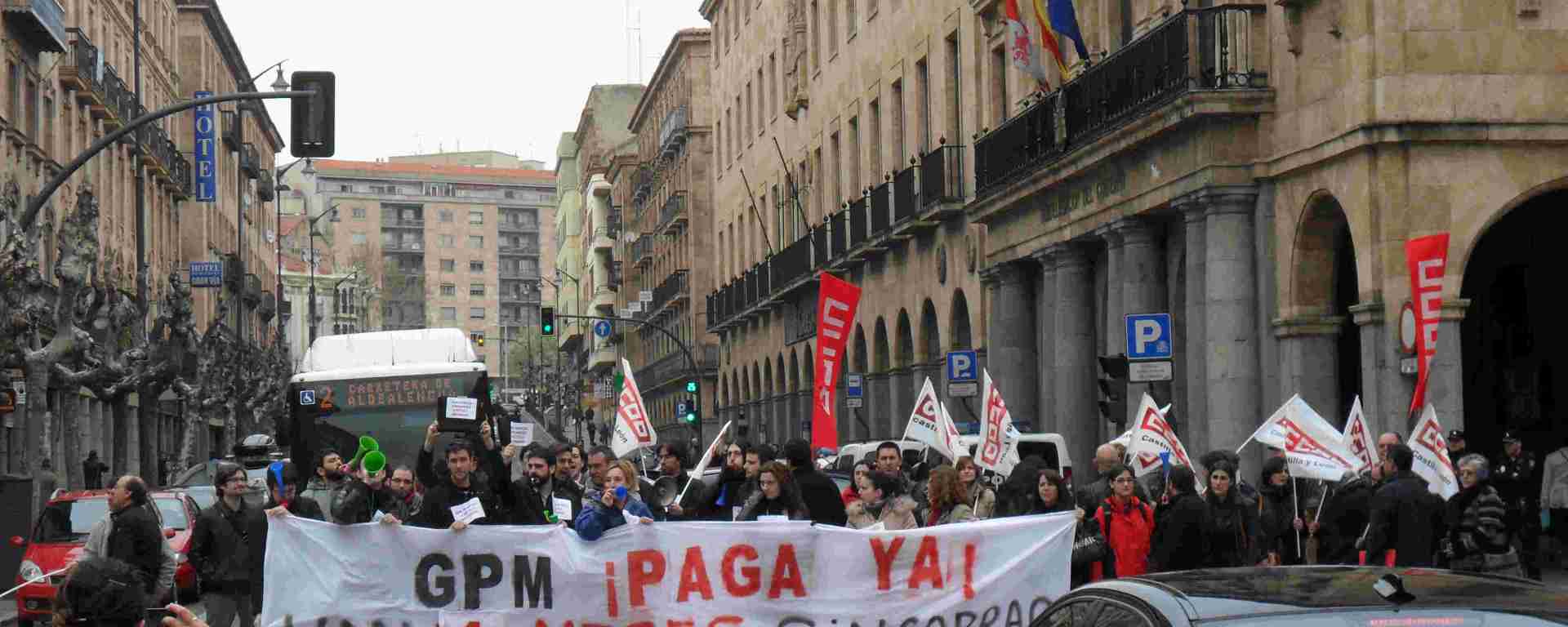 Nos encontramos de nuevo aquí los trabajadores de la empresa GPM para protestar por la situación incomprensible en la que nos encontramos 70 familias.