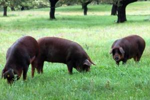 Por lo general, los ganaderos de porcino engordan cerdos que proceden de hembra pura ibérica y de un macho que es al 70 por ciento ibérico y al 30 de la raza duroc-jersey.