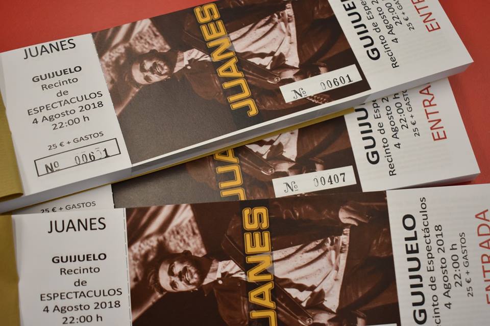 Aunque el pasado 15 de junio salían a la venta por internet, en red Ticketmaster, las entadas para el concierto estelar que el cantante internacional, Juanes ofrecerá en Guijuelo el 4 de agosto, los fans ya pueden adquirirlas además en la Oficina de Turismo, de 10 a 14 horas, para evitar el pago de las tasas de gestión.
