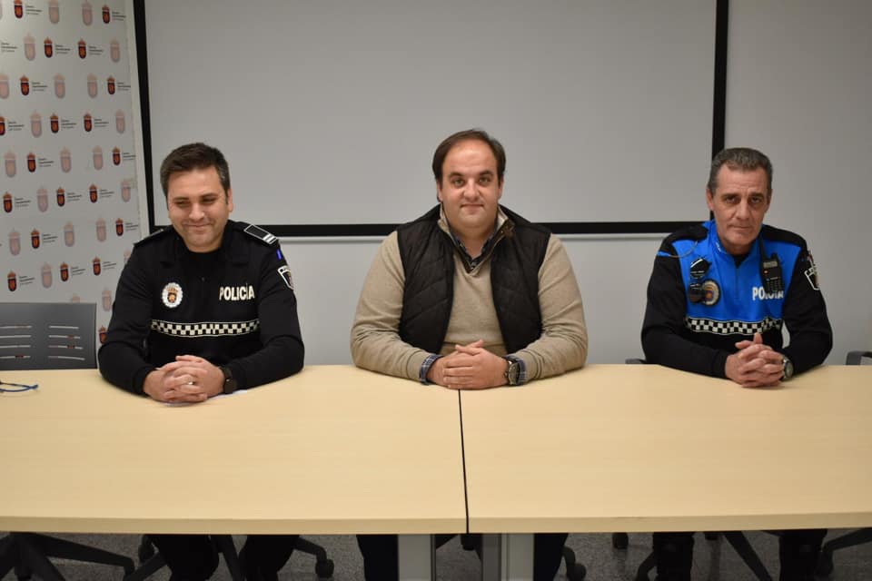 La Policía Local contará con servicio 24 horas al día, siete días a la semana y 365 días al año, así lo han anunciado el alcalde de Guijuelo, Roberto Martín, el jefe de la Policía Local, Clemente Iglesias y el agente local, Alberto Alonso.