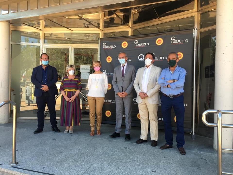 La sede de la Denominación de Origen de Guijuelo ha acogido en la mañana de hoy un encuentro en el que ha participado, la teniente de Alcalde del Ayuntamiento de Guijuelo, Yolanda Alonso, junto a Javier Izquierdo, Delegado del Gobierno en Castilla y León, Encarnación Pérez, Subdelegada del Gobierno en Salamanca, Jesús M.ª García, Director del Área de Agricultura de la Comunidad, Juan Carlos González, presidente de la DOP, Javier Castro, vocal del Consejo de la DOP y Francisco Javier Benito, presidente de la Asociación de la Industria de la Carne de Guijuelo.