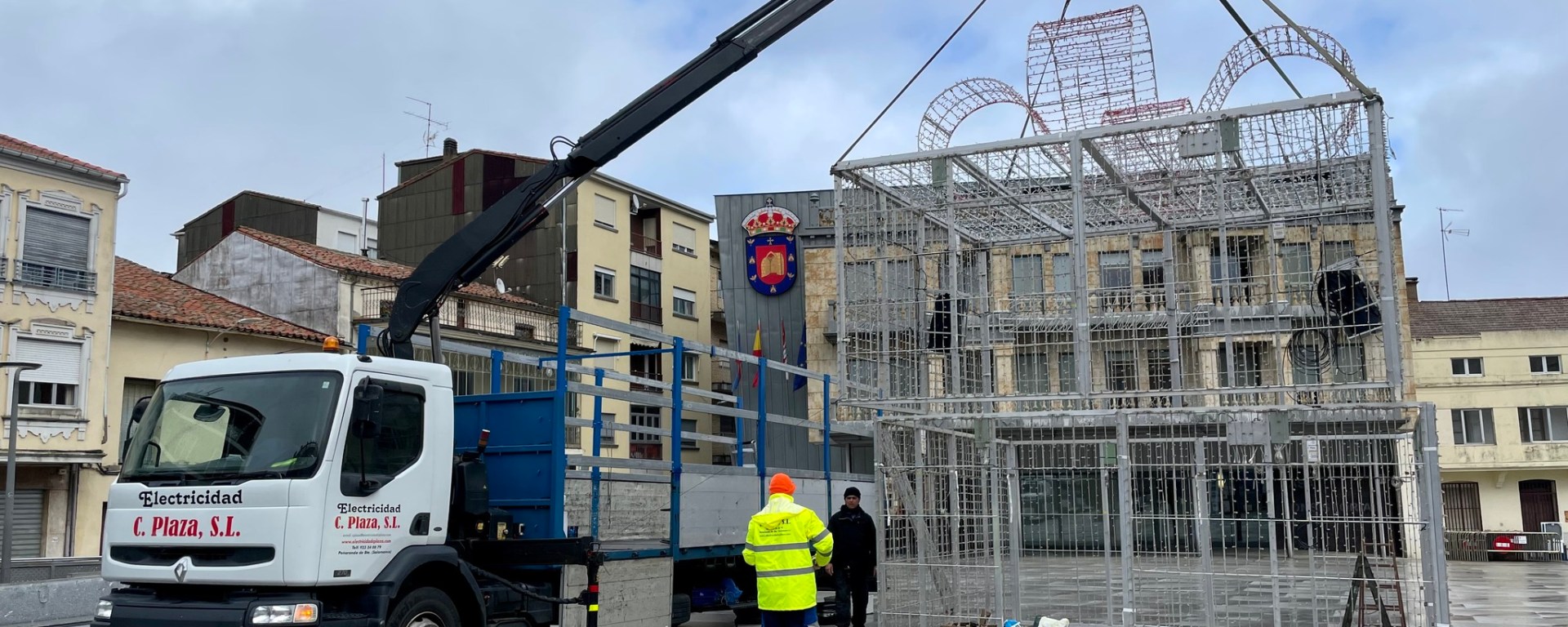 Los operarios municipales han comenzado a instalar las luces de Navidad en Guijuelo, por las calles de la localidad y esta misma mañana la empresa encargada de ambientar la Navidad ha iniciado la instalación de un gran regalo en el centro de la plaza Mayor, que contará con un espectáculo de iluminación y sonido.