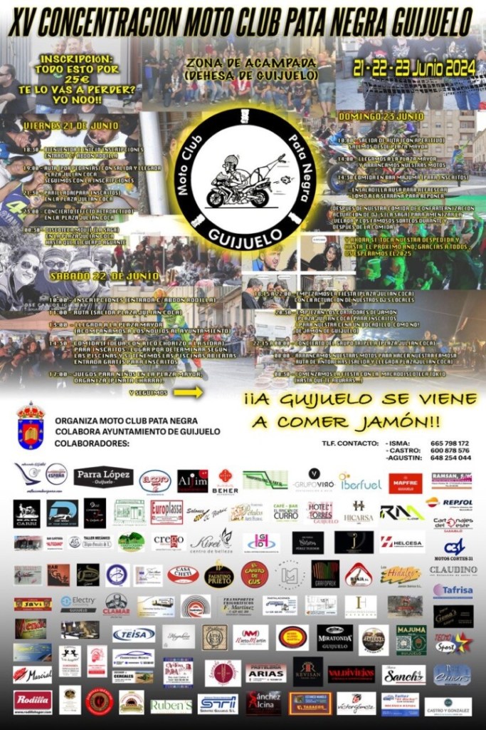 Del 21 al 23 de junio en las calles de Guijuelo rugirán las motos en la edición número quince de la Concentración Moto Club Pata Negra.