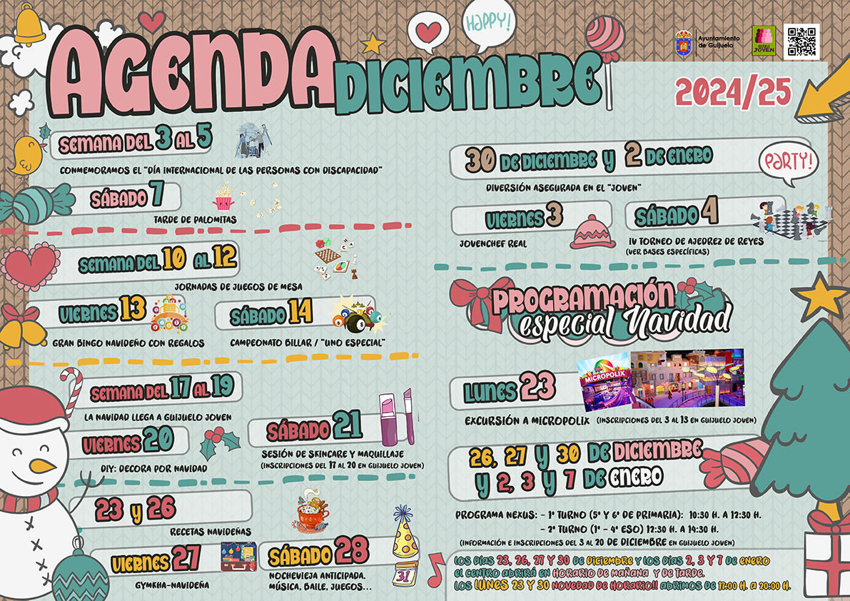 Repostería de navidad, nochevieja anticipada, sesión de skincare, excursión navideña y horario ampliado de atención en el programa especial de Navidad de Guijuelo Joven.