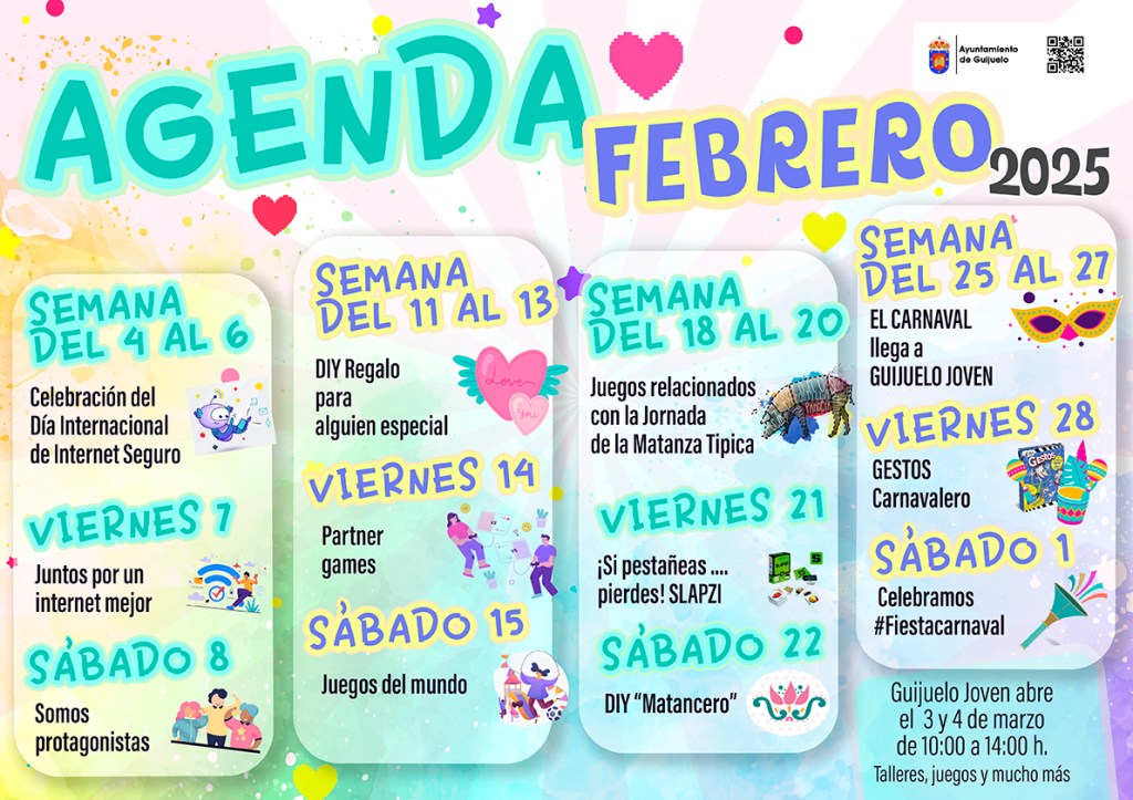 Las propuestas juveniles de febrero arrancarán con la celebración del Día Internacional de Internet Seguro, del 4 al 7, mientras que ese fin de semana participarán en la propuesta ‘Somos protagonistas’.