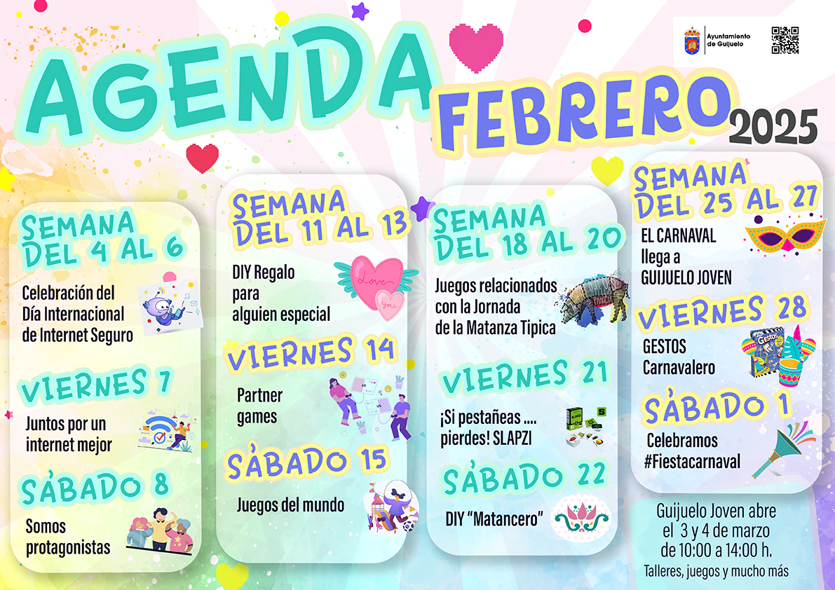 Las propuestas juveniles de febrero arrancarán con la celebración del Día Internacional de Internet Seguro, del 4 al 7, mientras que ese fin de semana participarán en la propuesta ‘Somos protagonistas’.