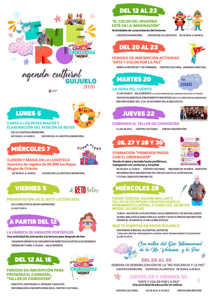 Enero ha comenzado en Guijuelo con propuestas relacionadas con la llegada de sus Majestades de Oriente y continúa con la presentación del Reto Lector 2026, el inicio de la preparación del Carnaval y las invernales de la Ludoteca.